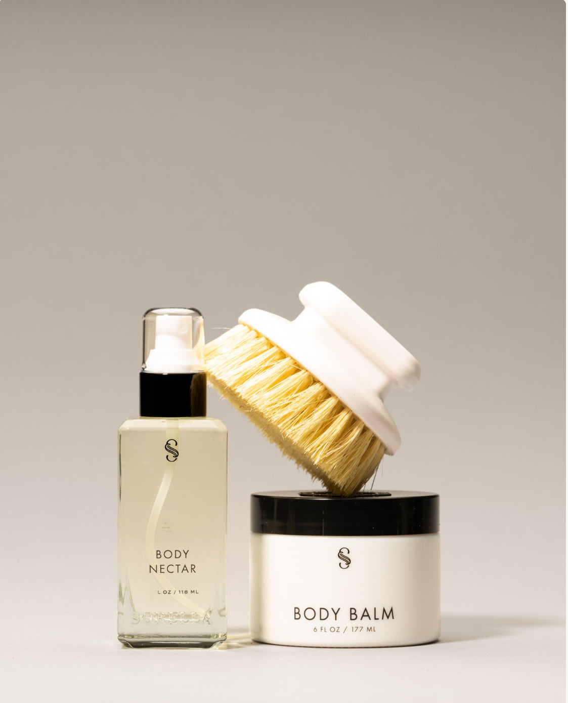 Nourish your skin to reveal a healthy glow from head to toe. Includes Sorella dry brush, Body Balm and Body Nectar.